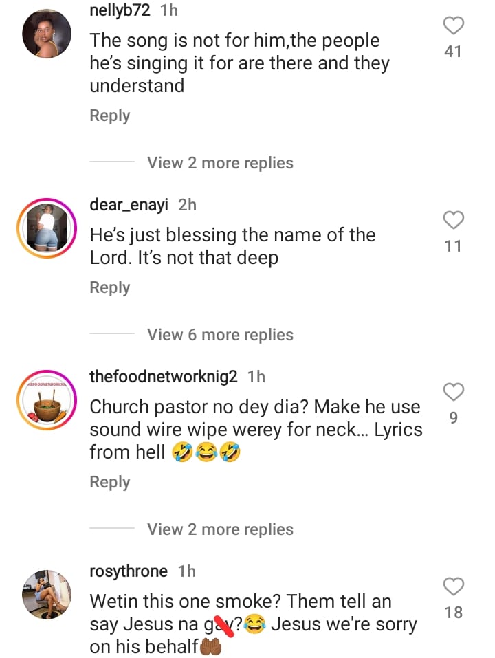 thefoodnetworknig2 wrote: “Church pastor no dey dia? Make he use sound wire wipe werey for neck… Lyrics from hell”