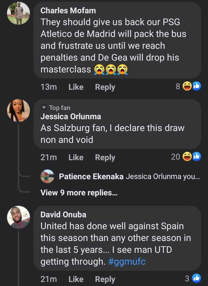 @Charles Mofam, one of United’s fans wrote, “They should give us back our PSG Atletico de Madrid will pack the bus and frustrate us until we reach penalties and De Gea will drop his masterclassa.”