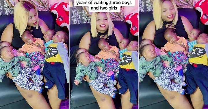 A Nigerian woman was so full of joy as she carried her five beautiful babies she welcomed after several years of waiting.