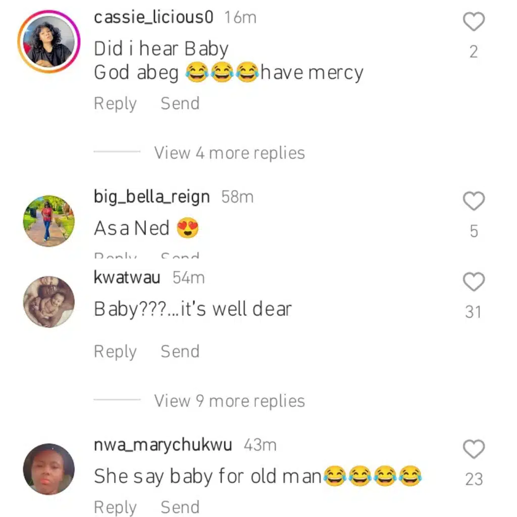 Another user added, “She say baby for an old man.”