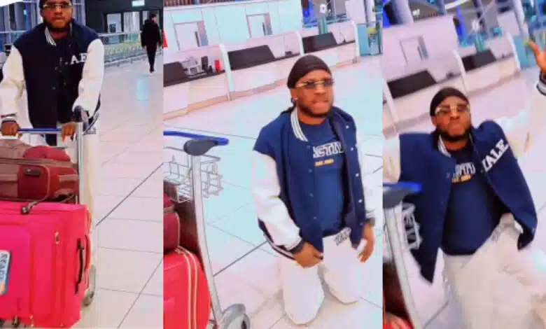 Nigerian man known as Henry celebrates with great joy in his heart as he arrives at UK airport after relocating from Nigeria amidst the nation’s hardship.