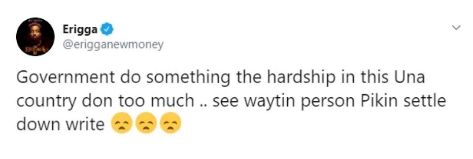 “Government do something the hardship in this Una country don too much .. see waytin person Pikin settle down write”, he wrote.