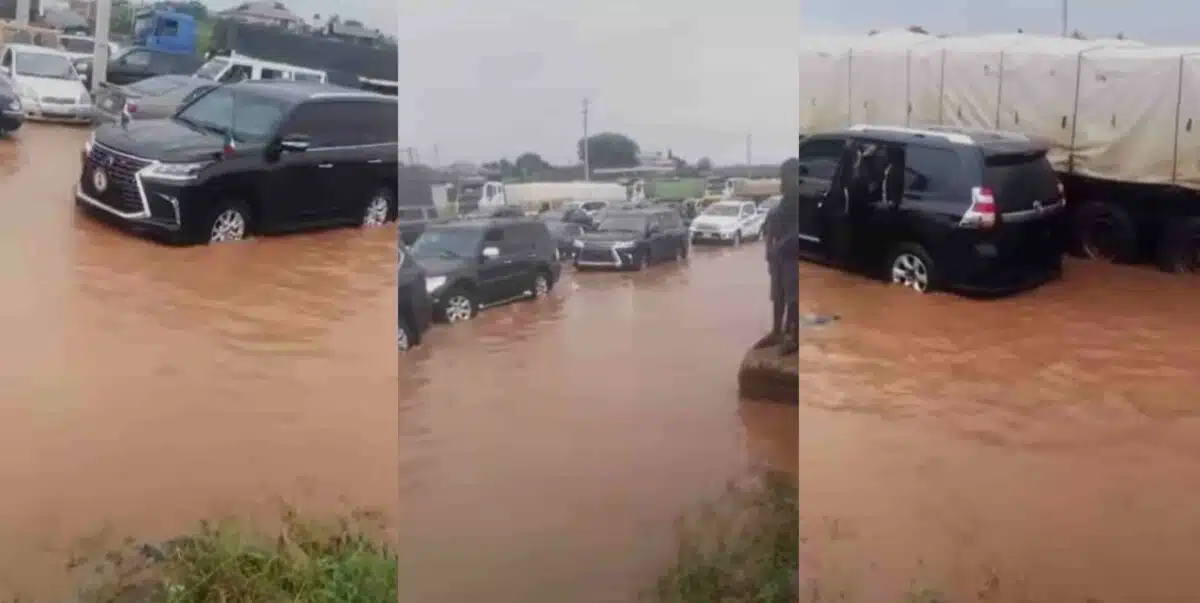 The rich also cry is a proverb that finds expression in one of the states in Nigeria as the government convoy got stranded in flood.