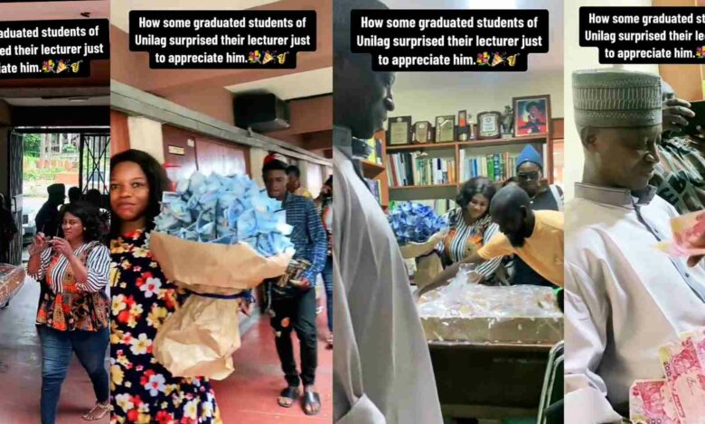 An online video shows the beautiful moment some UNILAG students shared how they surprised their lecturer with gifts just to appreciate him.