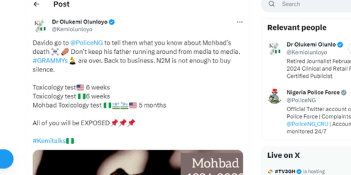 Controversial investigative journalist, Kemi Olunloyo has asked Afrobeat artist Davido to tell the police what he knows about the death of Mohbad.