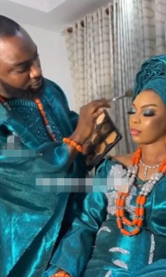 A video making rounds across social media networks capture the moment a husband-to-be carefully crafted the makeup on the face of his bride.