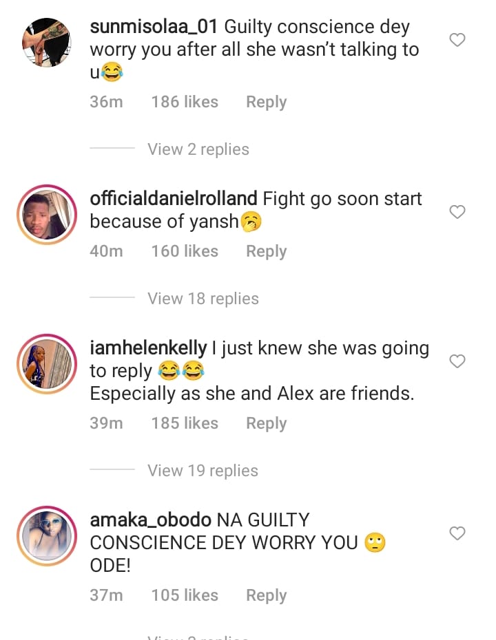 sunmisolaa_01 wrote: “Guilty conscience dey worry you after all she wasnt talking to u”
