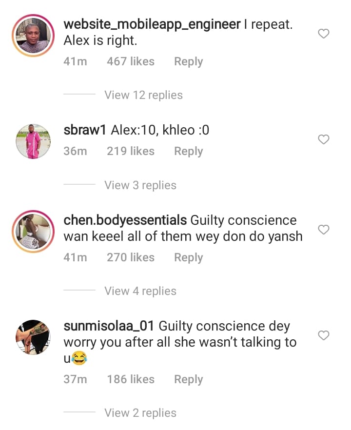 “Guilty conscience dey worry you” – Netizens drag Khloe after she mocked Alex over advice against cosmetic surgery