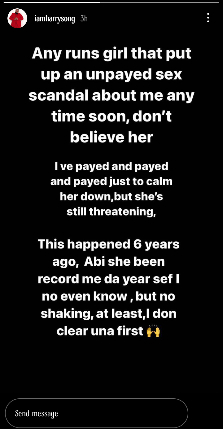 Taking to his Instagram story, the singer revealed that he has repeatedly paid the lady to stop her from posting it, but she’s still threatening.