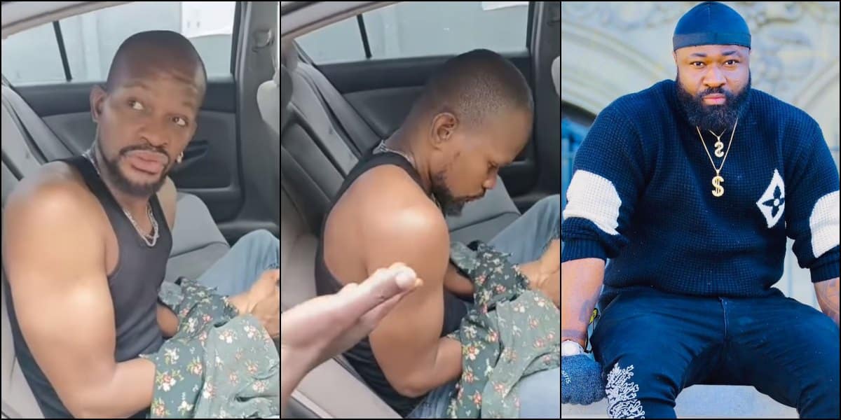 A video circulating online shows the moment singer Harrysong allegedly arrests the controversial movie star and critic, Uche Maduagwu.