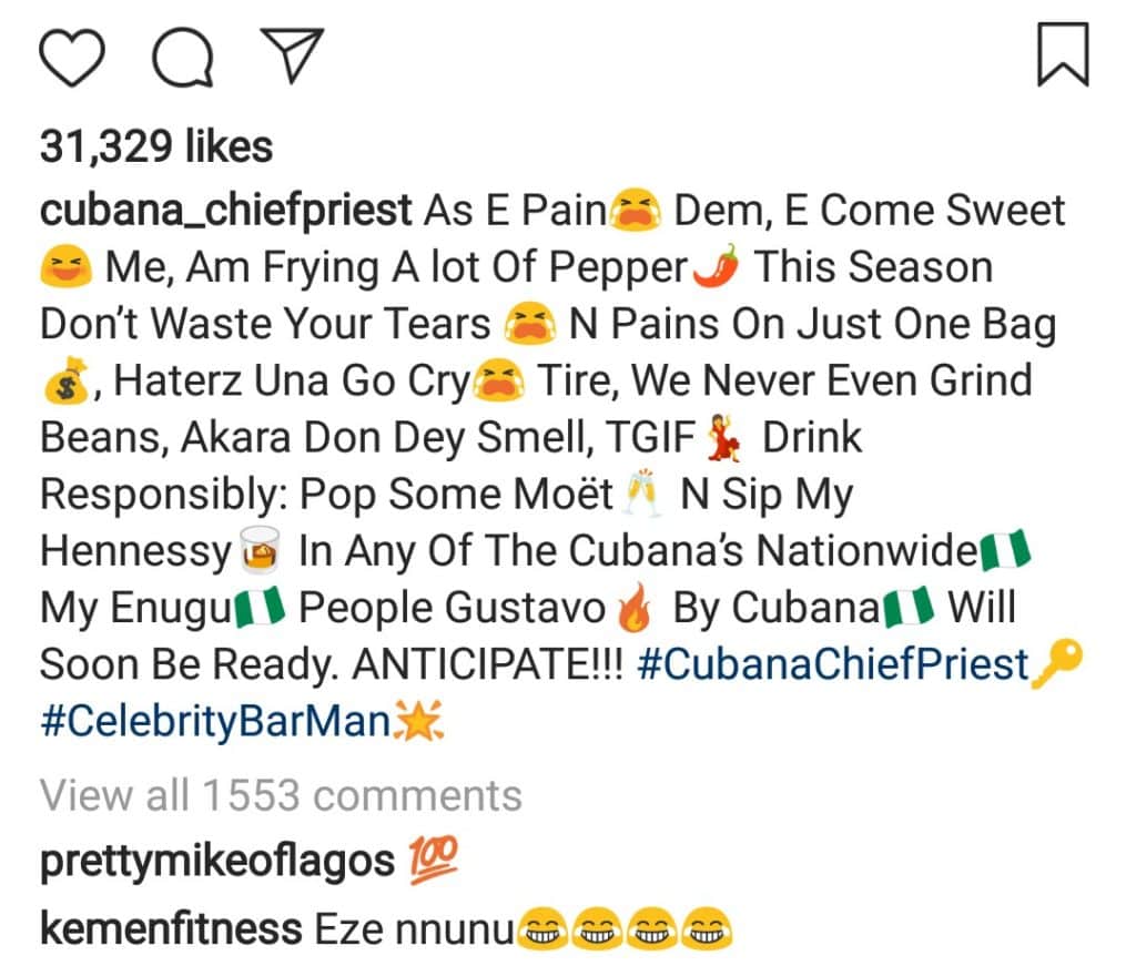 Cubana Chiefpriest has also advised haters to save their tears as the ‘pepper’ just started.