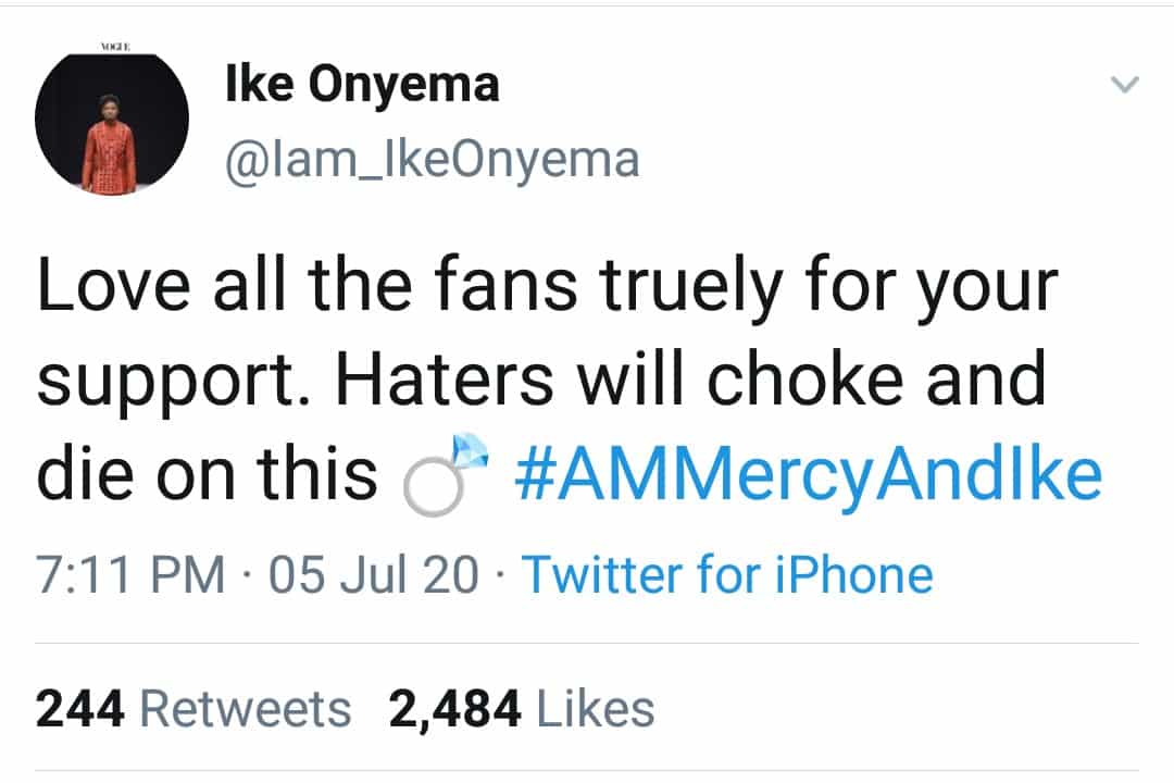 “Haters will choke and die on this” – Ike hints on proposing to Mercy Eke