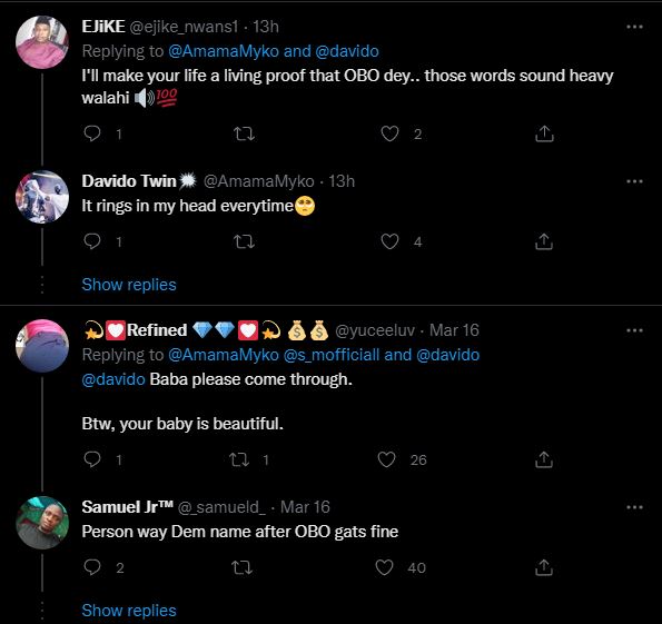 A Twitter user identified as @AmamaMyko has reminded the superstar crooner, David Adeleke, professionally known as Davido about the promise he made to him and his son 2 years ago.