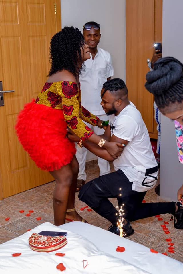 “He deserves it” – Lady says as she kneels down to accept her boyfriend’s proposal (Photos)