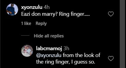 xyonzulu queried: “Eazi don marry? Ring finger…..”