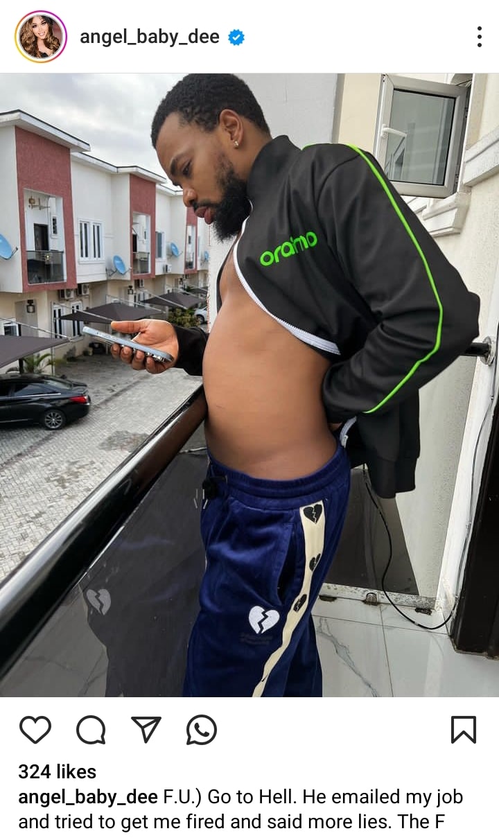 In a new post, Angel has claimed that her husband tried to make her lose her job.