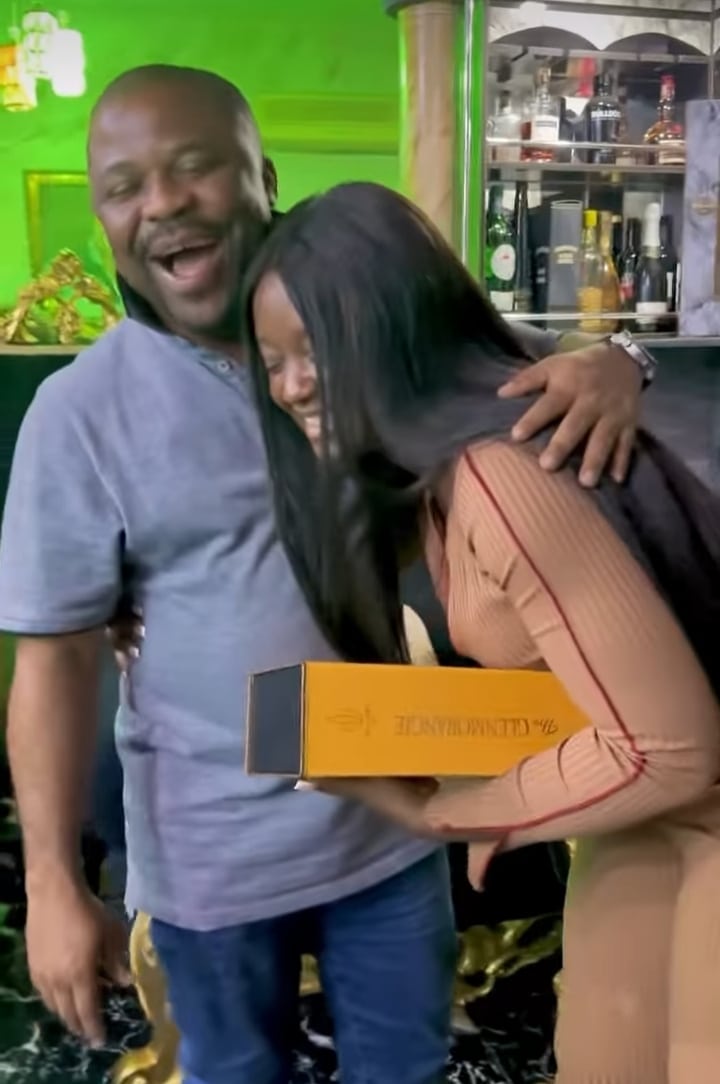 In the video shared by the actress, she was spotted receiving wine with utmost excitement from the bereaved actor.