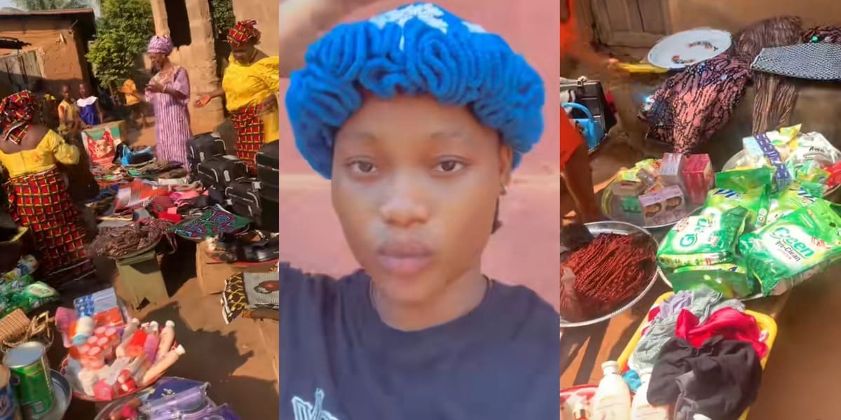 A Nigerian bride from Imo state got many people talking on social media as she flaunts the bride price in goods brought to her compound by her soon-to-be husband.