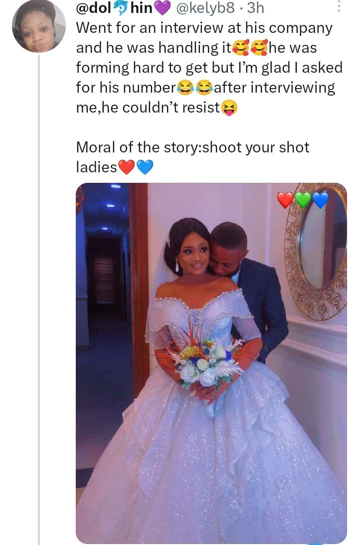 The lady who’s now happily married to the man advised other ladies to learn to shoot their shots.