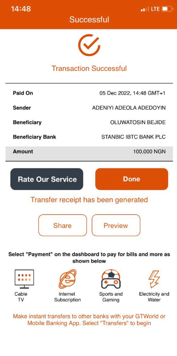 According to Adeola, the first transfer was prompted by Bejide’s request for assistance due to financial struggles.