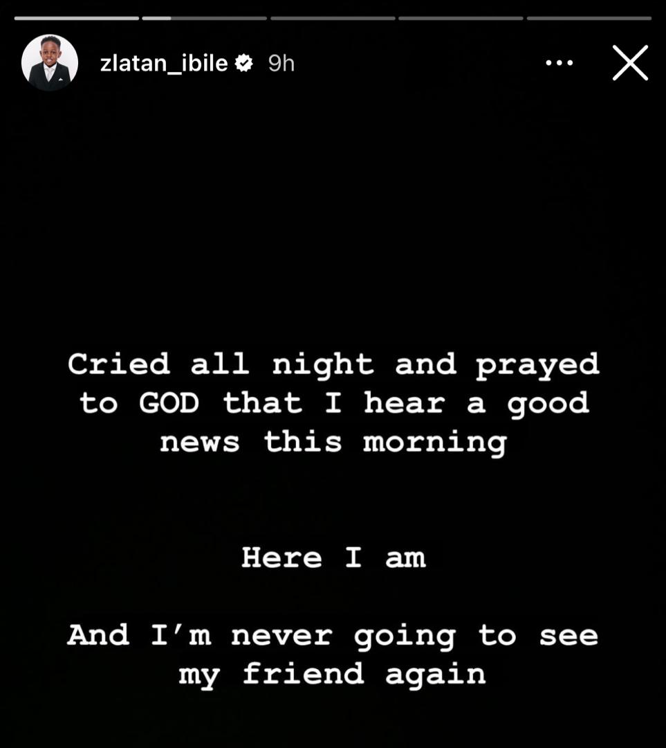 Sharing a throwback photo from back in the day, Zlatan Ibile emphasized how he prayed to hear good news after their last conversation about his health prior to his death.