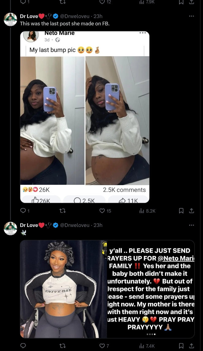 @Dagreatdey4you: “So heartbreaking 💔 Sending love and prayers to Neto Marie’s family and friends during this difficult time.”