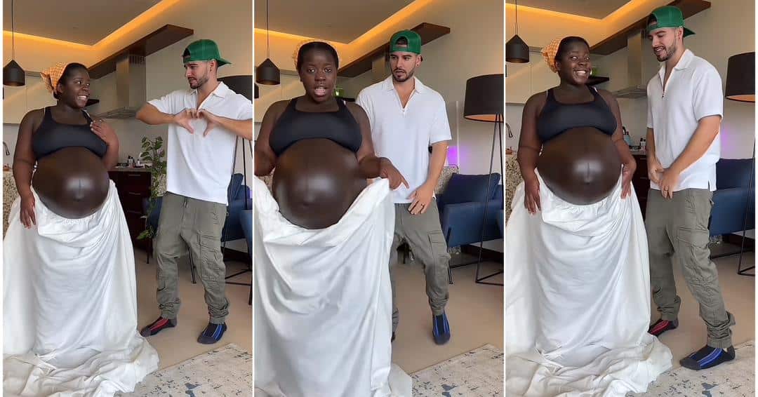 A heavily pregnant black woman who married an oyinbo man has shown off her huge baby bump to the delight of netizens.