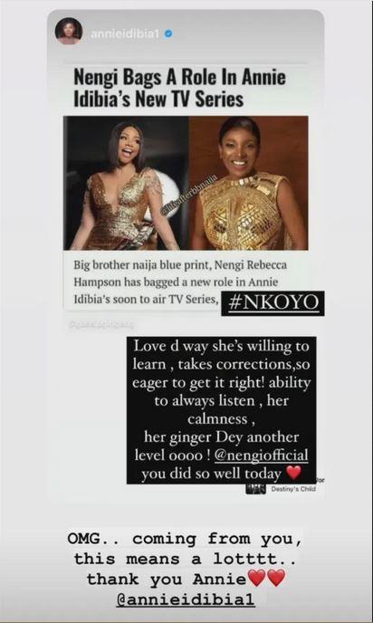 Nengi, on her part, appreciated Annie for the compliments and applaud.