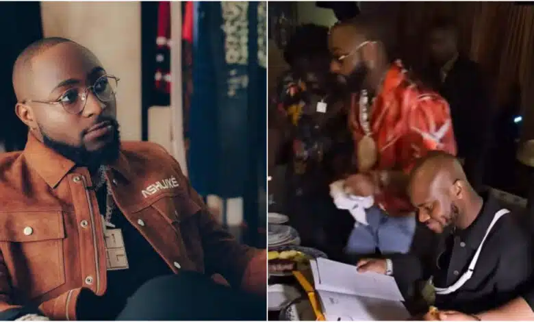 “He’s avoiding poisoning” – See what Davido did after he was served food publicly