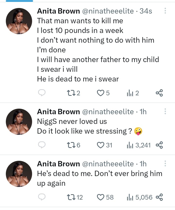 Anita Brown, the alleged baby mama of popular Afrobeats star Davido, says he’s dead to her as she decries losing 10 pounds in a week.