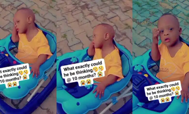 Nigerian mother expresses concern in a viral video over her 10-month-old son after she found him looking lost in thought, despite his young age.