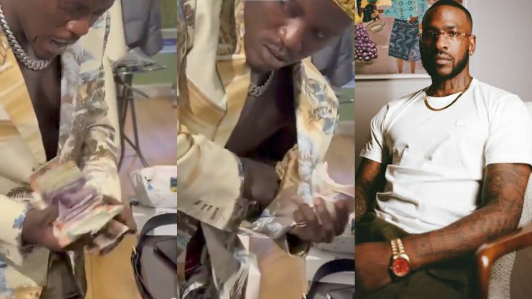 A video online shows the moment Afrobeats singer, Portable quickly hides the pounds he was given by the British rapper, Skepta at the British Fashion Awards event.