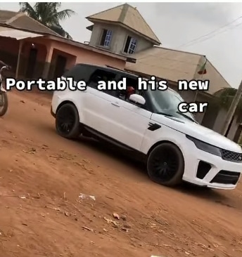 Controversial singer, Habeeb Okikiola popularly known as Portable stirs reactions as he’s seen driving his expensive car on untarred road.