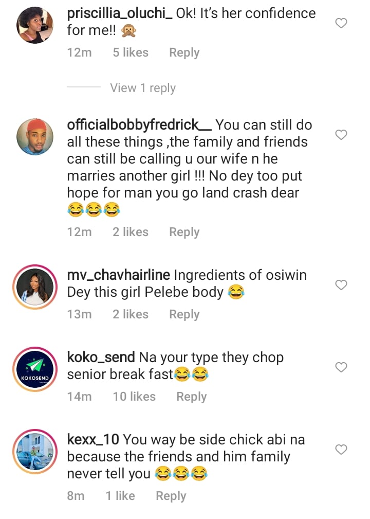 officialbobbyfredrick__ wrote: “You can still do all these things ,the family and friends can still be calling u our wife n he marries another girl !!! No dey too put hope for man you go land crash dear”