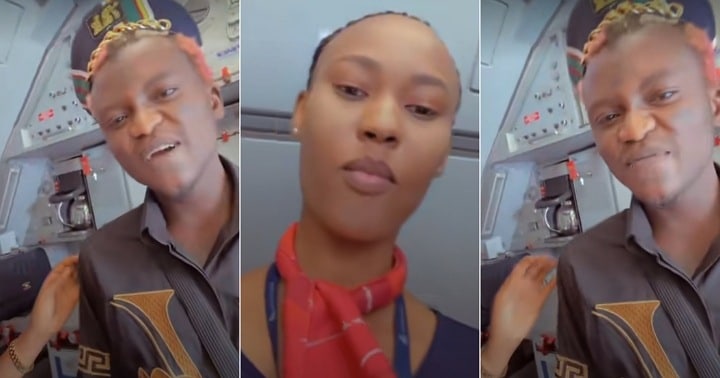 “His Grammar is so clean” – Portable changes accent as he meets pretty flight attendant (Video)
