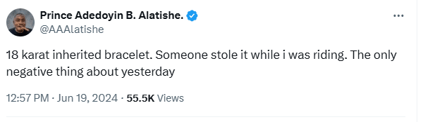Nigerian man laments the loss of his 18-karat inherited bracelet which got stolen while he was riding his horse at the 2024 Ojude Oba Festival.