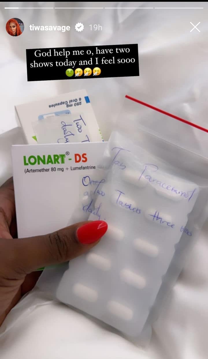 “God help me o, have two shows today and I feel sooo 🤢🤧🤧🤧,” she captioned.