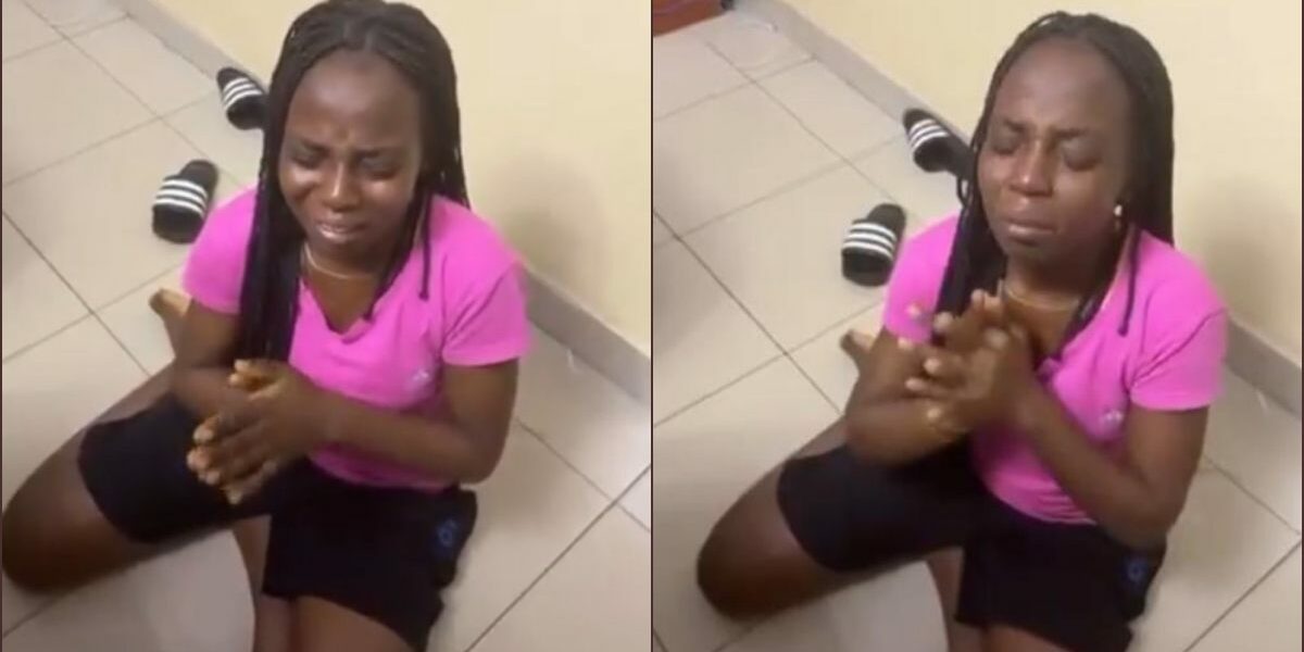 In the video, Omolola was seen pleading and begging for forgiveness, after reportedly being confronted with damning evidence. According to reports, she bragged to a friend about her actions in a WhatsApp voice note.