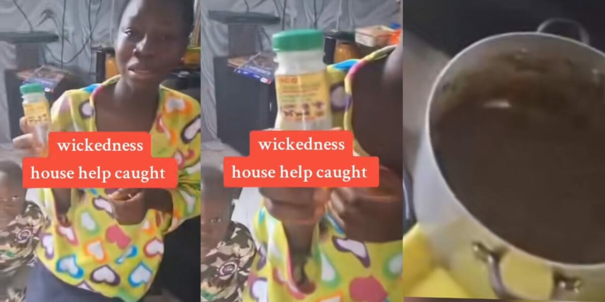 A house help has been caught on video attempting to add insecticide to her boss’s food.