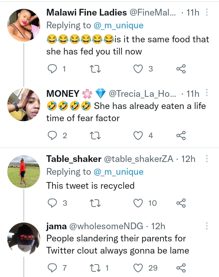 “How can you come online and slander your own mother?” – Netizens drag lady after she described her mum’s cooking as a ‘fear factor’