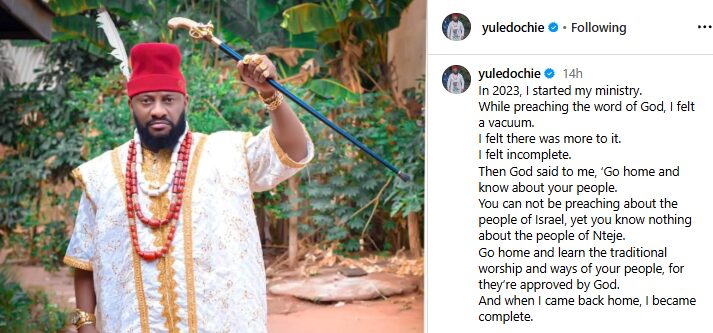 How God led me to transition from Christian pastor to traditional worshipper – Yul Edochie