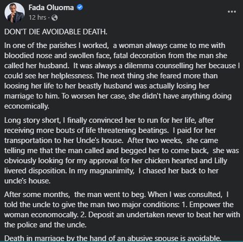 How I convinced a woman to leave her abusive husband – Fada Oluoma shares as he weighs in on late Osinachi’s saga