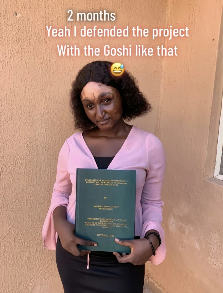A newly inducted pharmacist from the University of Bingham has revealed how a lab experiment nearly ruined her face during final year project.