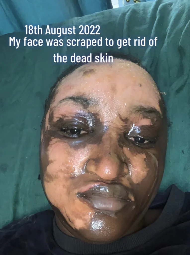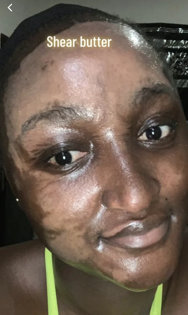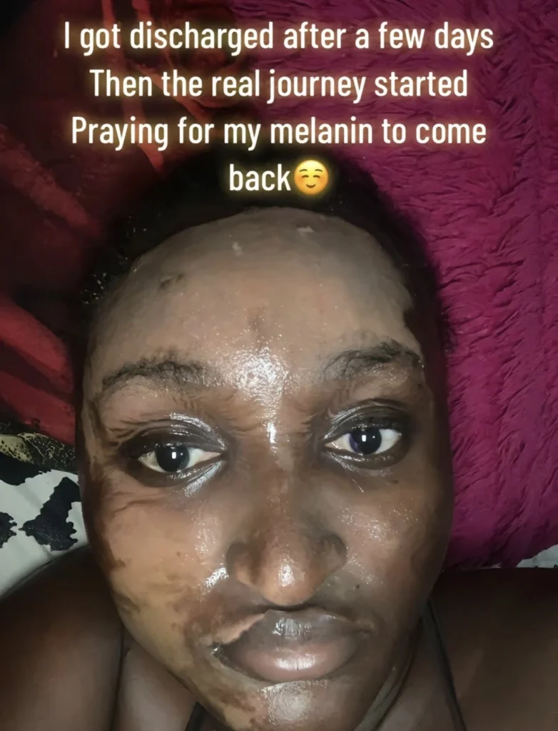 She had to get rid of the dead skin, for which she had to use several creams and products to bring back her melanin and aid healing.