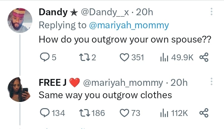 Although, she refused to give a clear sense of what she means by outgrowing her husband.