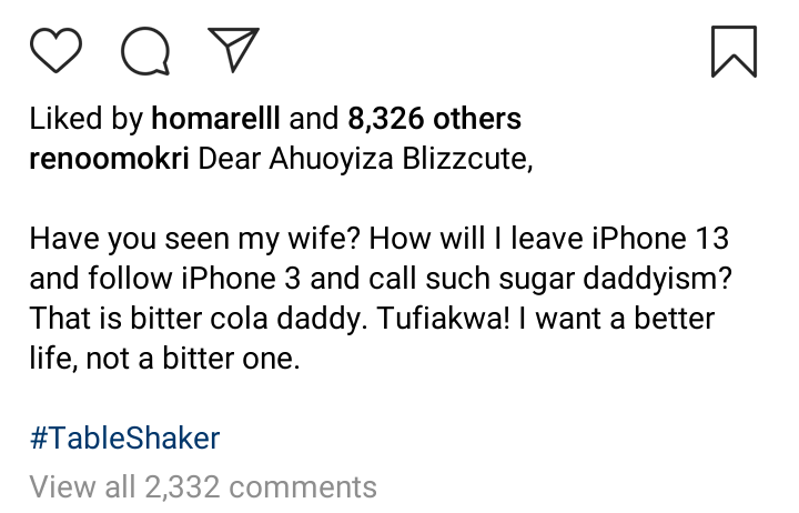 Have you seen my wife? How will I leave iPhone 13 and follow iPhone 3 and call such sugar daddyism? That is bitter cola daddy. Tufiakwa! I want a better life, not a bitter one.”