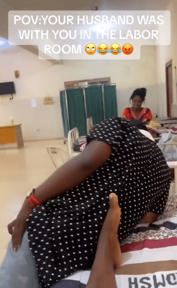 The pregnant woman, identified as Damolamii Hairmpire, decided to capture the hilarious moments as her husband brought a dose of laughter to the intense atmosphere of the delivery room.