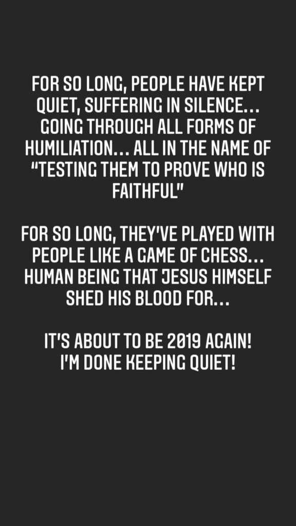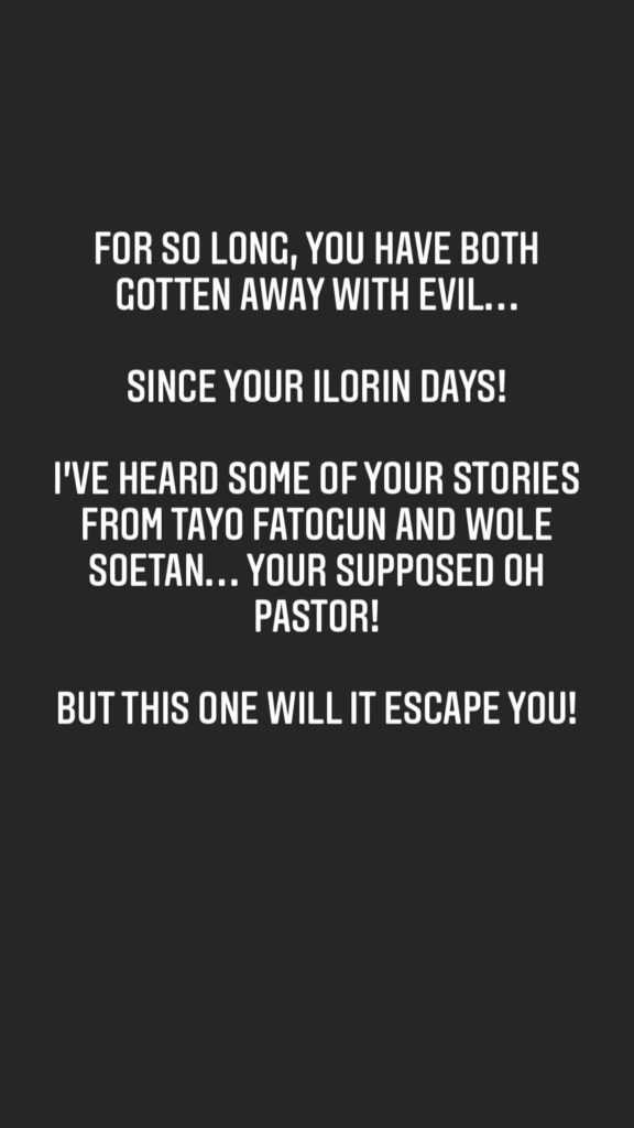In a series of posts which she shared via Instagram, the grieving lady accused Biodun of allegedly dabbling into occult, doing evil things and covering them up with the help of his accomplices in the church.