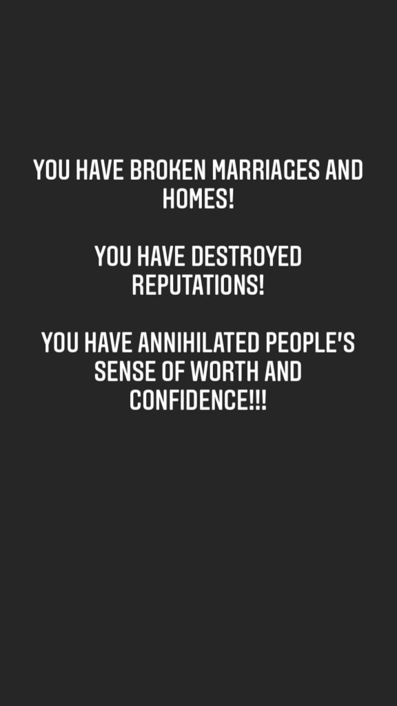 People have lost their faith in God because of you. You have broken marriages and homes. Your suffering and judgement shall be an everlasting one.