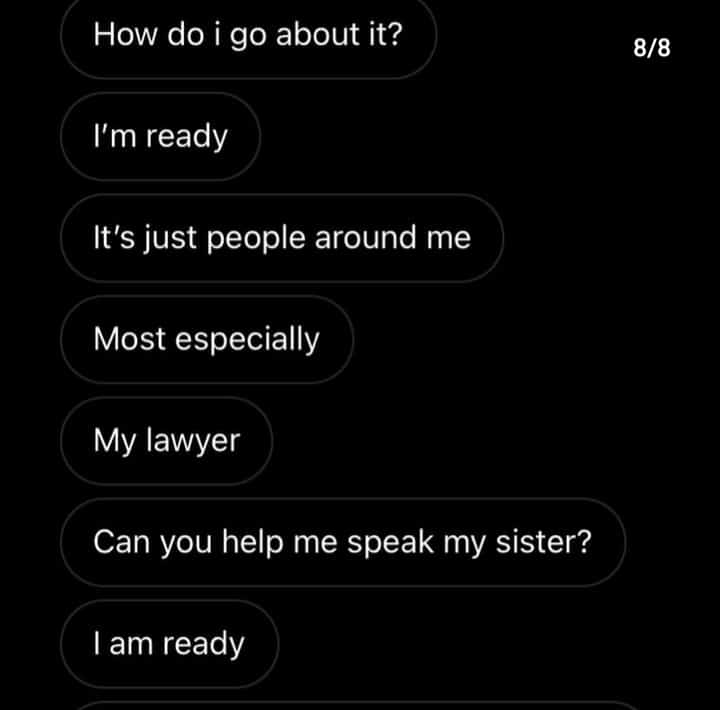 I only greet him whenever I see him. Mohbad got me deflowered. How do i go about it? I’m ready. It’s just people around me, Most especially My lawyer. Can you help me speak my sister? I am ready.”
